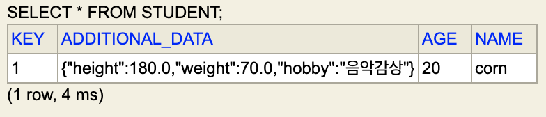 Student는 추가데이터(additionalData)를 갖고 있으며, 이 데이터는 additionalData라는 컬럼에 Json 형태로 들어갈 것이다.
