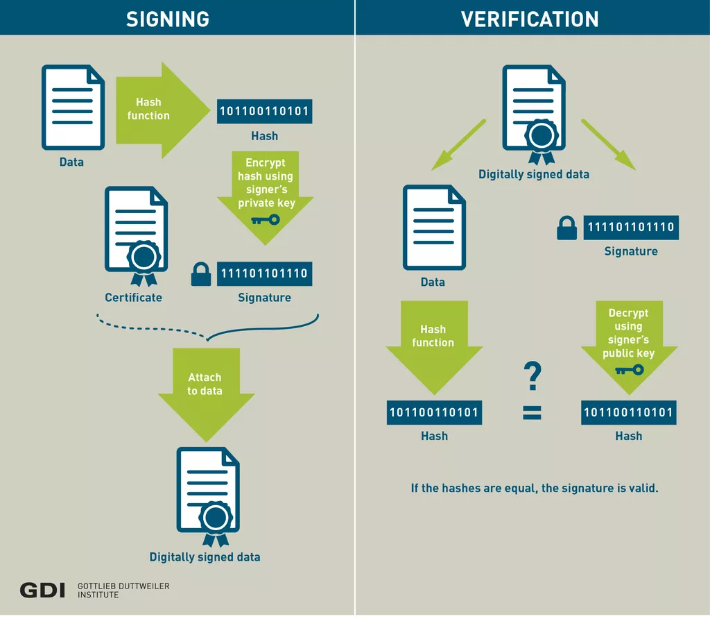 여기서 인증기관(CA)은 나의 공개키(인증서)를 보증하기 위해서 서명을 하게 된다. 여기서 서명이란 나의 공개키의 해쉬된 값(SHA256)을 인증기관의 개인키로 암호화 한 결과값을 뜻한다. ⇒ 디지털 서명(Digital Signing)