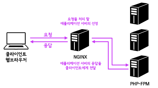위의 그림에서 업스트림 서버는 PHP-FPM이 설치된 서버이고, Nginx는 DownStream 서버라고 할 수 있다.