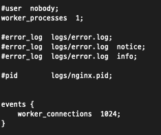 별도의 사용자 계정 (user nginx nginx)로 만드는 것이 좋다.worker_process 1;