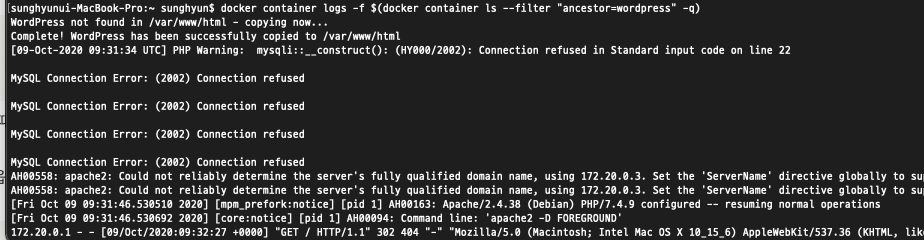 $ docker container cp wp_wordpress_1:/var/www/html/index.php . # wp_wordpress 컨테이너에서 index.php 가져오기