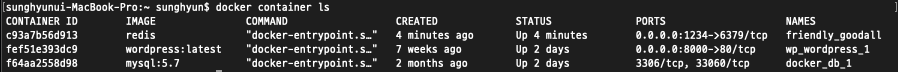 $ docker container ls --filter "ancestor=redis" # 이미지 기준