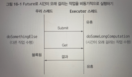 시간이 걸릴 수 있는 작업을 Future 내부로 설정하면 호출자 스레드가 결과를 기다리는 동안 다른 유용한 작업을 수행할 수 있다.